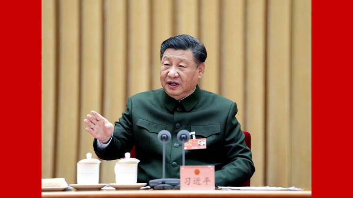 3月10日,十四届全国人大一次会议在北京人民大会堂举行第三次全体会议。习近平全票当选为中华人民共和国主席、中华人民共和国中央军事委员会主席。这是习近平进行宪法宣誓。