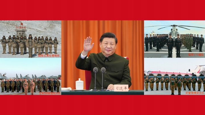 1月18日,中共中央总书记、国家主席、中央军委主席习近平在北京八一大楼以视频方式检查部队战备工作,亲切慰问有关部队,代表党中央和中央军委,向全体人民解放军指战员、武警部队官兵、军队文职人员、民兵预备役人员致以诚挚问候和新春祝福。