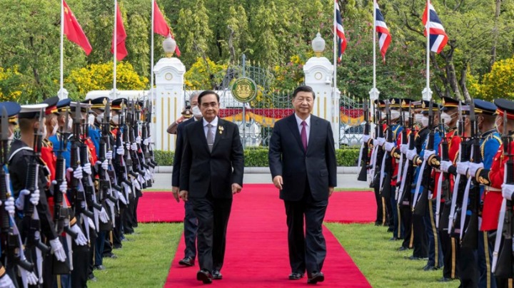 当地时间11月19日中午,国家主席习近平在曼谷总理府同泰国总理巴育举行会谈。新华社记者 翟健岚 摄 当地时间11月19日中午,国家主席习近平在曼谷总理府同泰国总理巴育举行会谈。