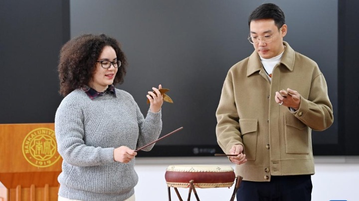 巴西姑娘艾茉莉是南开大学的硕士研究生,对中国传统文化十分着迷。她初次和中国结缘是在巴西上高中时。2019年,已是南开大学留学生的艾茉莉在参加学校组织的文化体验活动中,首次接触到了国家级非遗项目“京东大鼓”并为之着迷。