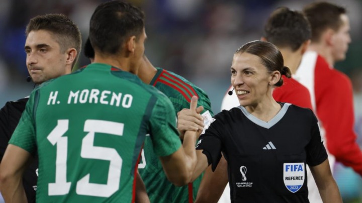 2022年4月1日,国际足联裁判委员会主席、意大利前足球裁判员科里纳出席卡塔尔世界杯抽签仪式 11月22日,卡塔尔世界杯D组法国队对阵澳大利亚队,第四官员、卢旺达裁判萨利玛·穆坎桑加(左)在比赛前