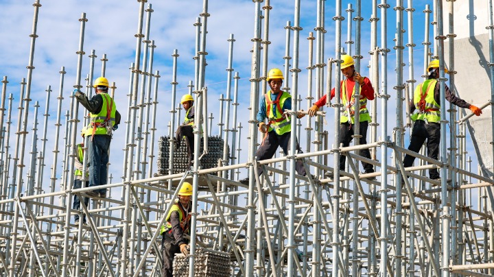 9月7日,在泰国呵叻,中泰铁路项目部监理总站专职翻译南塔蓬(右)与同事讨论工作。9月7日,在泰国呵叻,中泰铁路项目部监理四组副组长威罗(右)和中泰铁路项目部监理总站专职翻译南塔蓬在建设现场讨论工作。