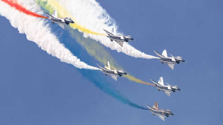 2022年8月28日,吉林长春,空军航空开放活动暨长春航空展进行到第3天,被称为“中国蓝天仪仗队”的空军八一飞行表演队以高超的飞行技巧,为观众奉献了一场速度与力量并存、技术与美学交融的飞行表演。