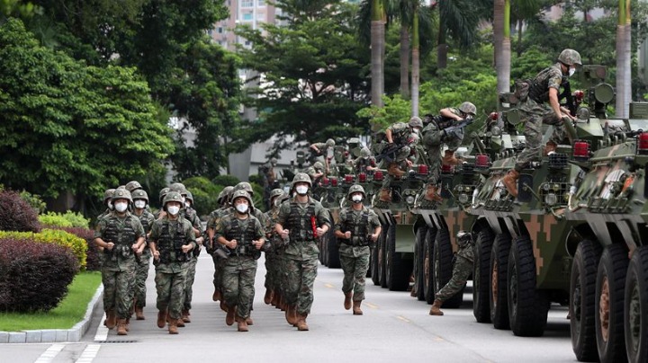 8月21日晚,重庆北碚区歇马街道虎头村凹儿坪发生火情,并进一步蔓延至璧山区八塘镇。8月25日晚,在重庆市北碚区缙云山山火现场,志愿者在搬运灭火救援物资,山下是大家全力守护的北碚城区。