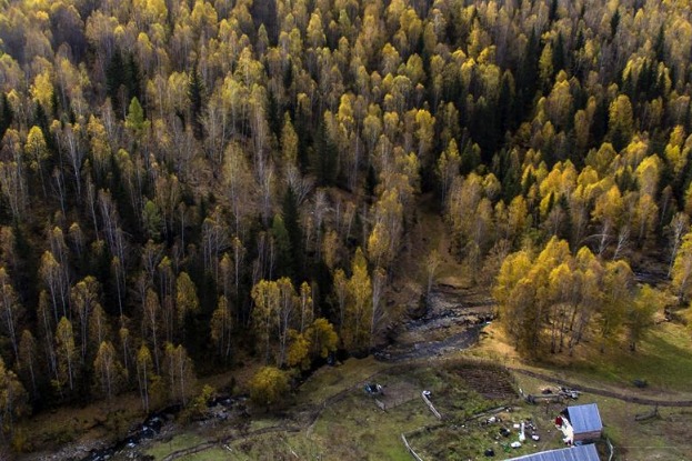 在新疆阿勒泰喀纳斯景区禾木村,游人在暮色中欣赏美景(9月26日摄)。高远的天空、唯美的景致,吸引天南海北的游客来到此处休闲游玩。高远的天空、唯美的景致,吸引天南海北的游客来到此处休闲游玩。