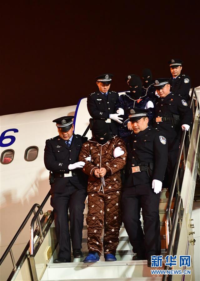1月11日,在郑州市新郑国际机场,犯罪嫌疑人被押解下飞机。记者从公安部获悉,1月11日,随着两架中国民航包机降落在河南省郑州市新郑国际机场,191名利用网络刷单实施诈骗的犯罪嫌疑人被我公安机关从老挝押解回国,涉及国内多个省区市的800余起案件成功告破,涉案金额6000余万元。新华社记者 冯大鹏 摄 图片来源:新华网