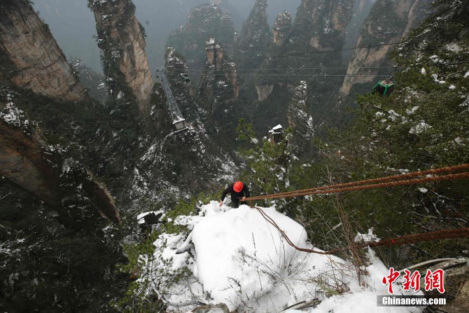 张家界黄石寨悬崖清洁工“飞檐走壁”拾垃圾
