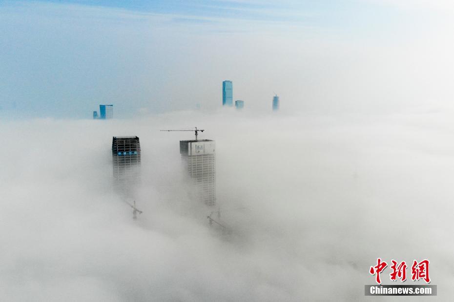 3月10日,湖南长沙遭遇大雾锁城,建筑物穿雾而出犹如仙境。当日上午,长沙气象台连发三条大雾预警信号,长沙市出现最低能见度不足200米的大雾。 杨华峰 摄