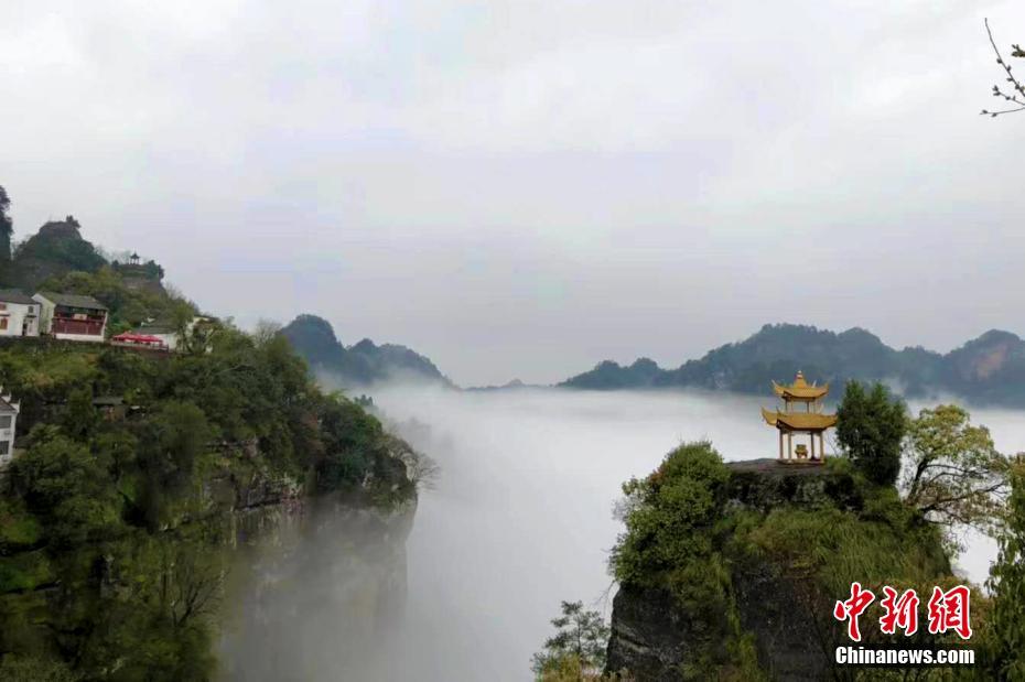 4月30日,安徽省休宁县齐云山烟雨蒙蒙,云雾缭绕。山腰悬崖边上有个名曰“月华村”的村庄,被层层云雾笼罩,远远望去,宛如“云中楼台”俨然一现实版的“世外桃源”。文/张强 詹彦 图/詹彦