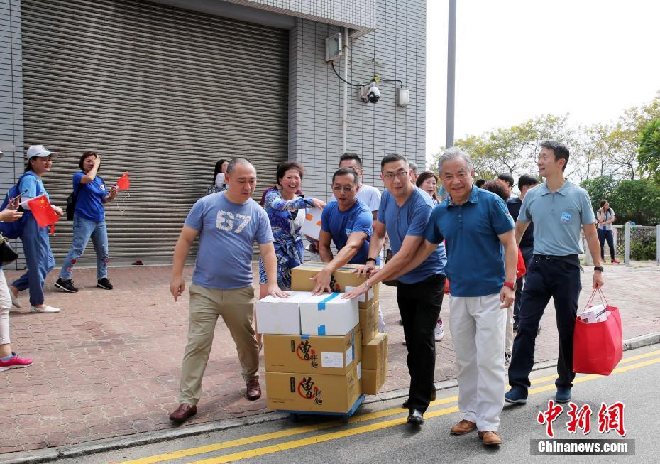 8月10日,“守护香港大联盟”当天在香港各区发起“全民撑警日”活动,呼吁市民携同亲友前往附近警署,向警队送上心意卡或慰问信,向警务人员表达慰问和支持。图为不少团体及个人陆续在中区警署慰问警察。中新社记者 洪少葵 摄